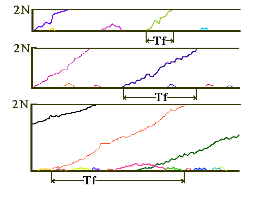 de mutantes é menor. Por outro lado, o tempo de fixação